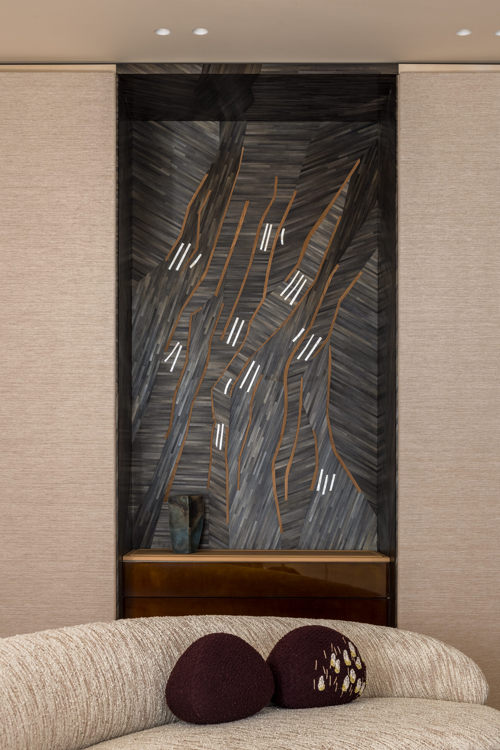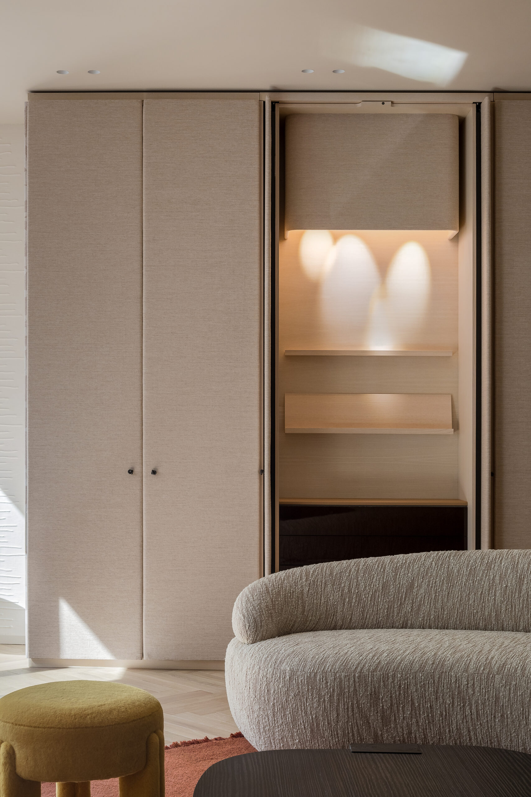Orchestrated by Ateliers Jouffre, the Paris showroom of the Par Excellence collective is a place dedicated to the expression of exceptional know-how. Surrounded by the other member Maisons, HENRI showcases its expertise through installations that are as discreet as they are sophisticated: lighting moods controlled by custom-made Meljac switches, blind and curtain management, integration of invisible speakers, security systems… So many solutions that can be operated very simply from a touch-sensitive tablet made available in the showroom. A subtle and elegant technology, designed to accompany the discovery of the place and sublimate the art of living promoted by the collective.